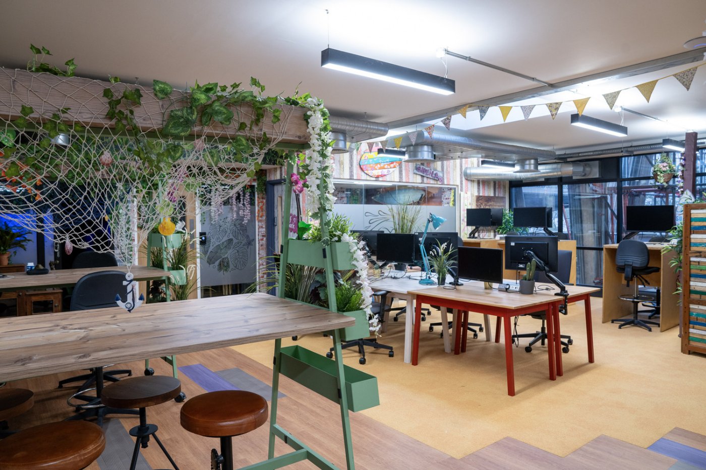You’ll find flexible hot desks, dedicated desks and private offices, Zoom-ready meeting rooms, phone booths, and standing desks, all under one panoramic roof. The Wi-Fi’s fast, the coffee’s free, and the fruit shows up every Wednesday.