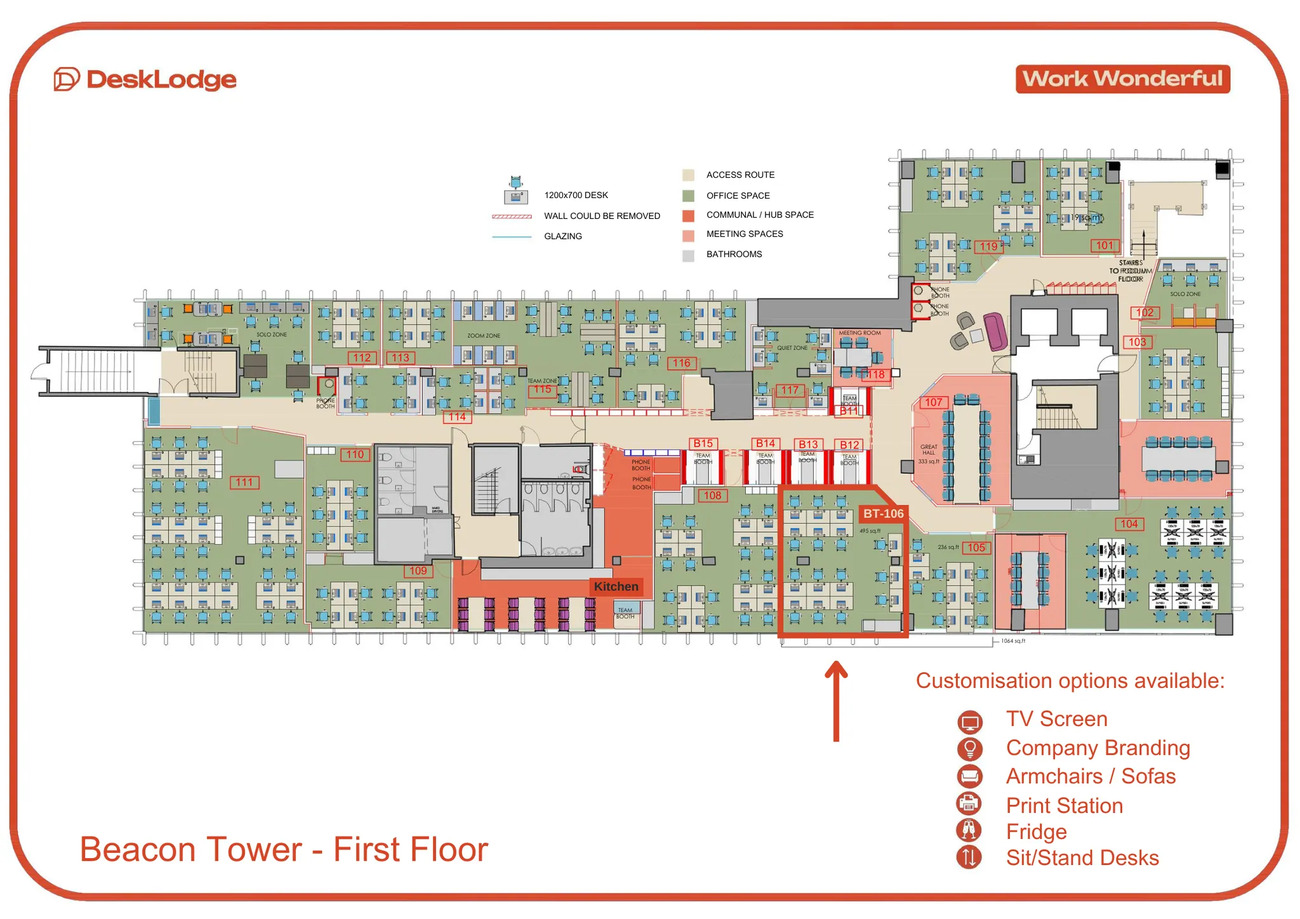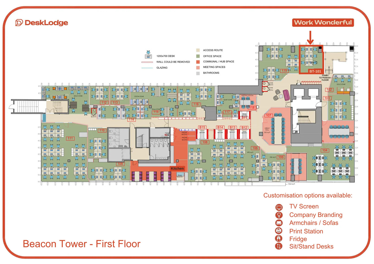 City-centre coworking with serious wow-factor. DeskLodge Beacon Tower brings together big views, bold design and the buzz of a community that actually cares. Recognised by The Sunday Times as one of the Best Places to Work, it’s a place built for thinkers, doers, and go-getters.