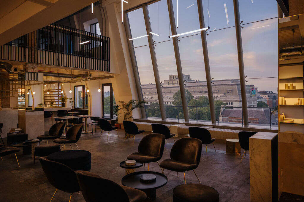 The seventh-floor Sky Lounge is the asset that separates LABS House from every other serviced office in Holborn. A double-height event and communal workspace with floor-to-ceiling windows and panoramic London skyline views, it is available to all members for panels, product launches, networking events, client hospitality, and team offsites, with standing capacity for 250, full AV equipment, and a private bar. Businesses that require an in-house event venue as part of their workspace offering, without the cost or commitment of a separate hire, will not find a comparable space in this postcode.